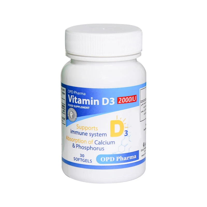 ویژگی‌های سافت ژل ویتامین D3 2000 واحد او پی دی فارما