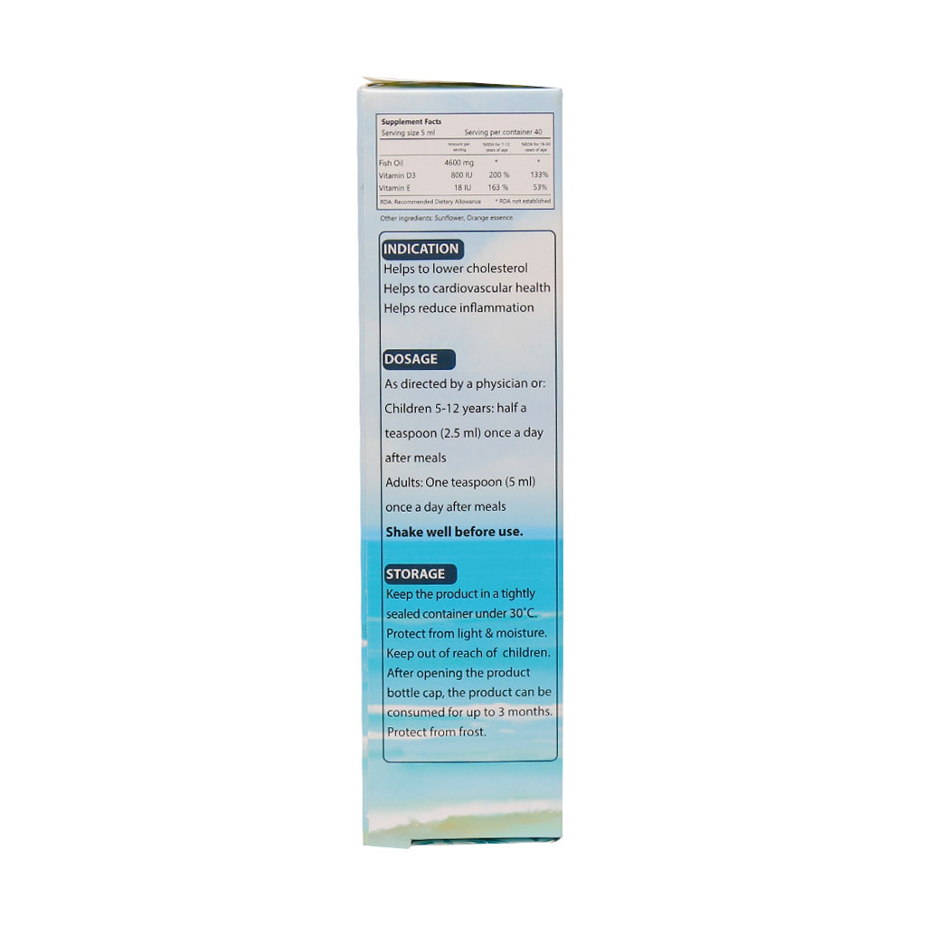 - حاوی روغن ماهی، ویتامین D۳ و ویتامین E