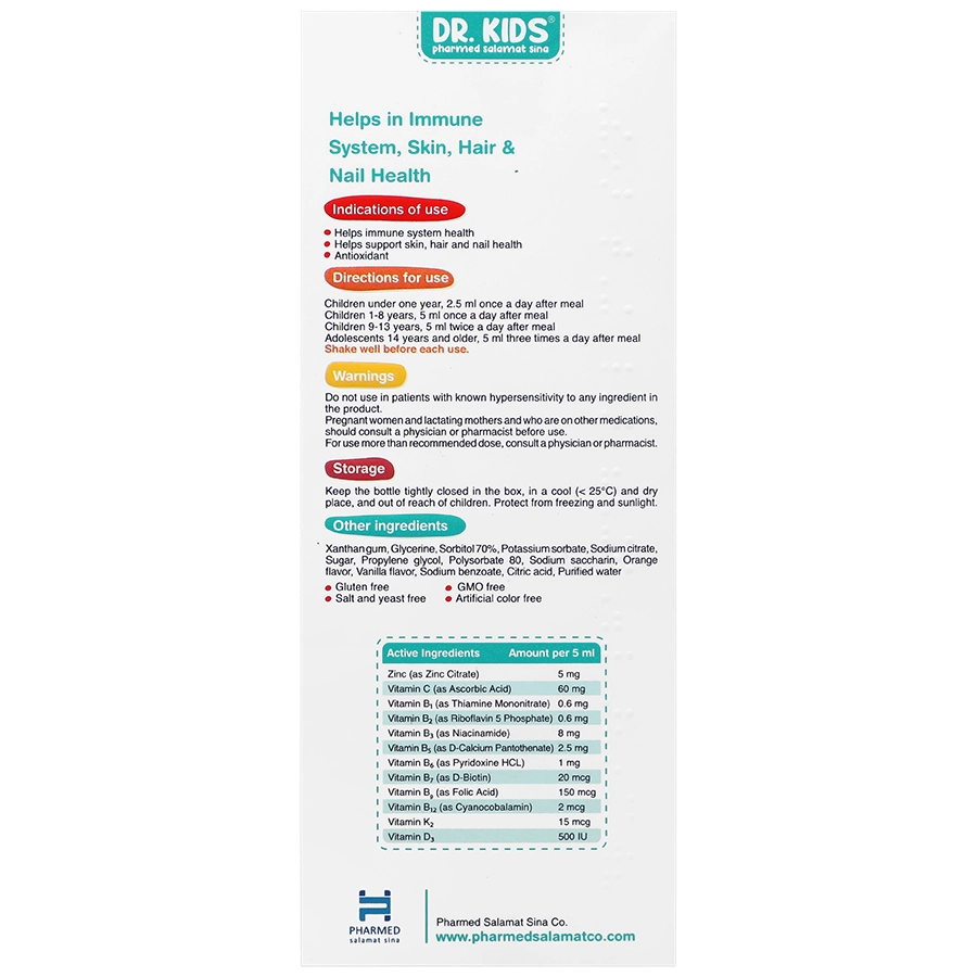 ویتامین های مکمل در شربت زینک دکتر کیدز