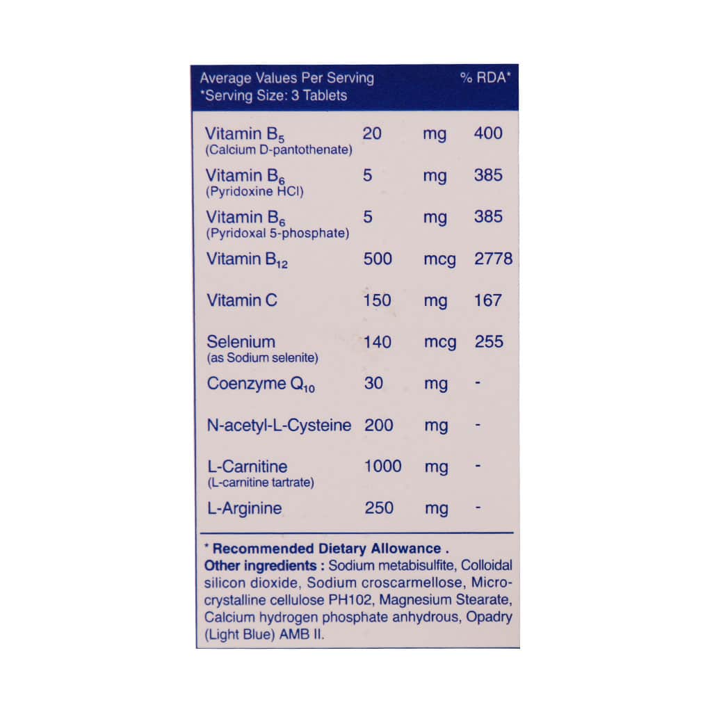 - ال-کارنیتین: نقشی حیاتی در متابولیسم انرژی سلولی، تحرک و بلوغ اسپرمها ایفا میکند و به کاهش خستگی کمک مینماید.
