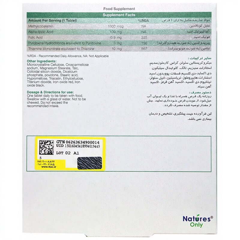 همچنین آلفا لیپوئیک اسید موجود در این محصول به محافظت از سلولها کمک میکند و زمانی که همراه با ویتامین B مصرف شود، میتواند به پایداری سلولهای عصبی و عملکرد بهتر آنها کمک کند. ویتامین های موجود در این محصول همچنین باعث افزایش انرژی و بهبود کارکرد سلولهای عصبی میشود. این محصول فاقد رنگ و طعمدهنده مصنوعی بوده و در ترکیب آن از گلوتن، سویا، گندم و شکر استفاده نشده است.