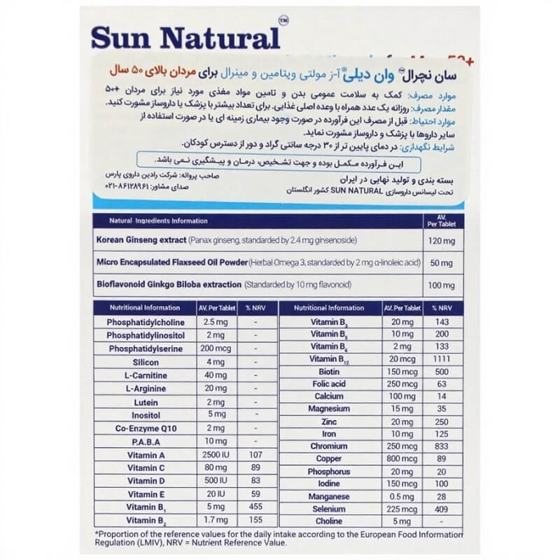 قرص مولتی ویتامین و مینرال وان دیلی آقایان بالای 50 سال سان نچرال