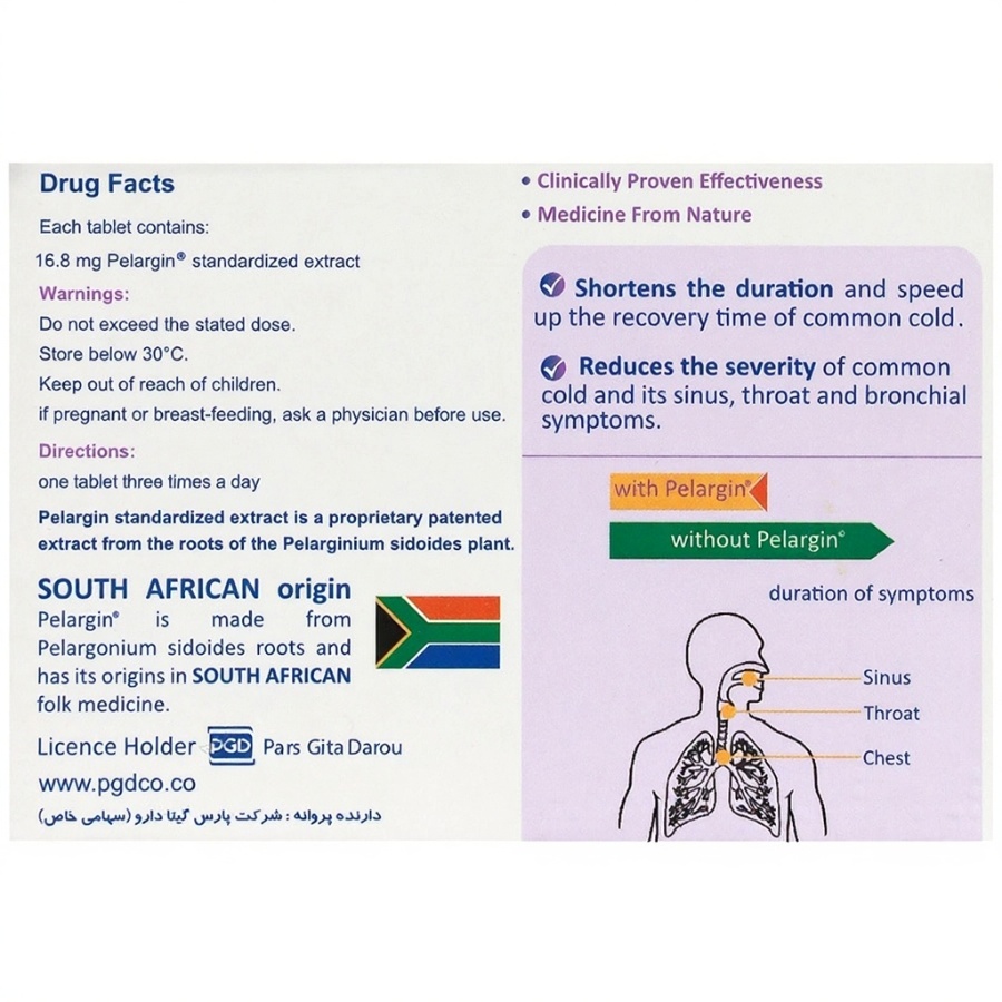 قرص پلارژین یک داروی گیاهی با منشأ آفریقایی است که از ریشه گیاه پلارگونیوم سیدوئیدس استخراج میشود. این گیاه قرنهاست در طب سنتی آفریقای جنوبی برای درمان عفونت های تنفسی مورد استفاده قرار میگیرد. مکانیسم اثر این دارو به گونهای است که با تقویت سیستم ایمنی بدن، مهار تکثیر ویروس ها و باکتری ها، و رقیق کردن ترشحات مجاری تنفسی به مبارزه با بیماری میپردازد.