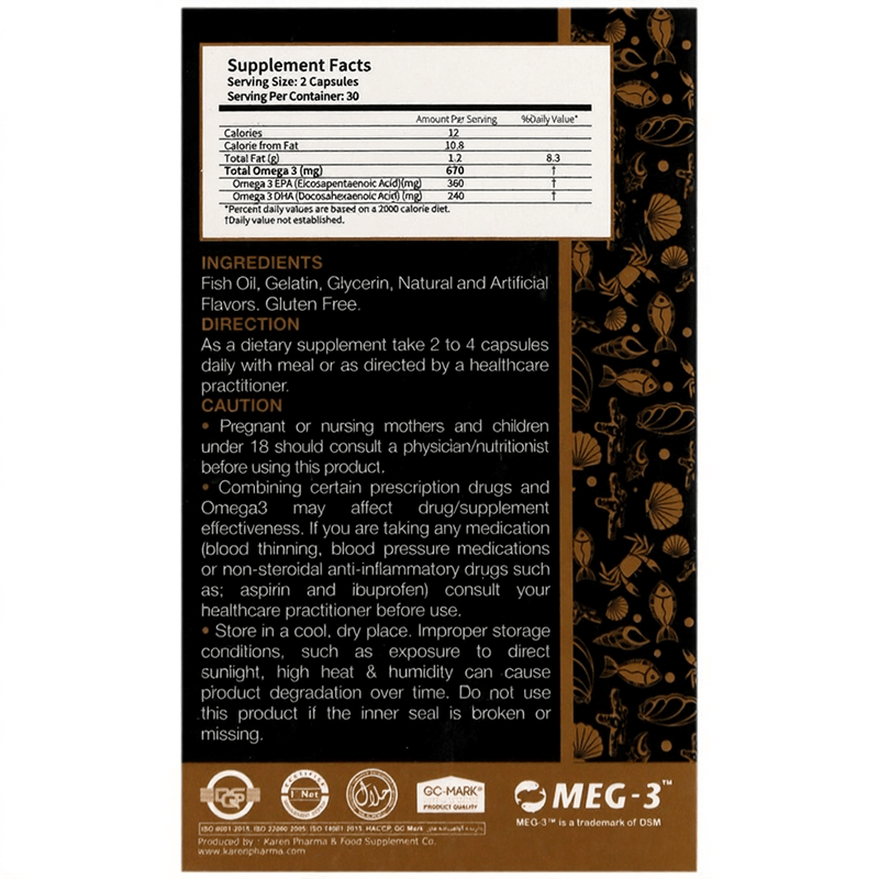 کپسول امگا ۳ گلدن سیز کارن حاوی روغن ماهی است که منبع خوبی از اسیدهای چرب مفید امگا ۳ مثل DHA و EPA محسوب میشود. DHA بخش مهمی از چربی سلولها، بهویژه در مغز و شبکیه چشم، را تشکیل میدهد.