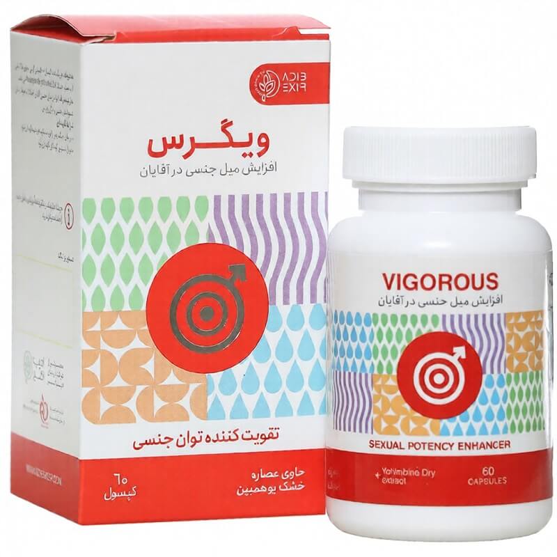 کپسول ویگرس ادیب اکسیر، یک مکمل گیاهی است که به شکل کپسول در بسته‌بندی‌های ۶۰ عددی توسط شرکت داروسازی ادیب اکسیر در ایران تولید می‌شود. این محصول برای کمک به افزایش توان و میل جنسی در آقایان کاربرد دارد. ترکیبات گیاهی موجود در ویگرس می‌توانند به بهبود نعوظ، کاهش مشکل زودانزالی و افزایش میل جنسی کمک کنند.