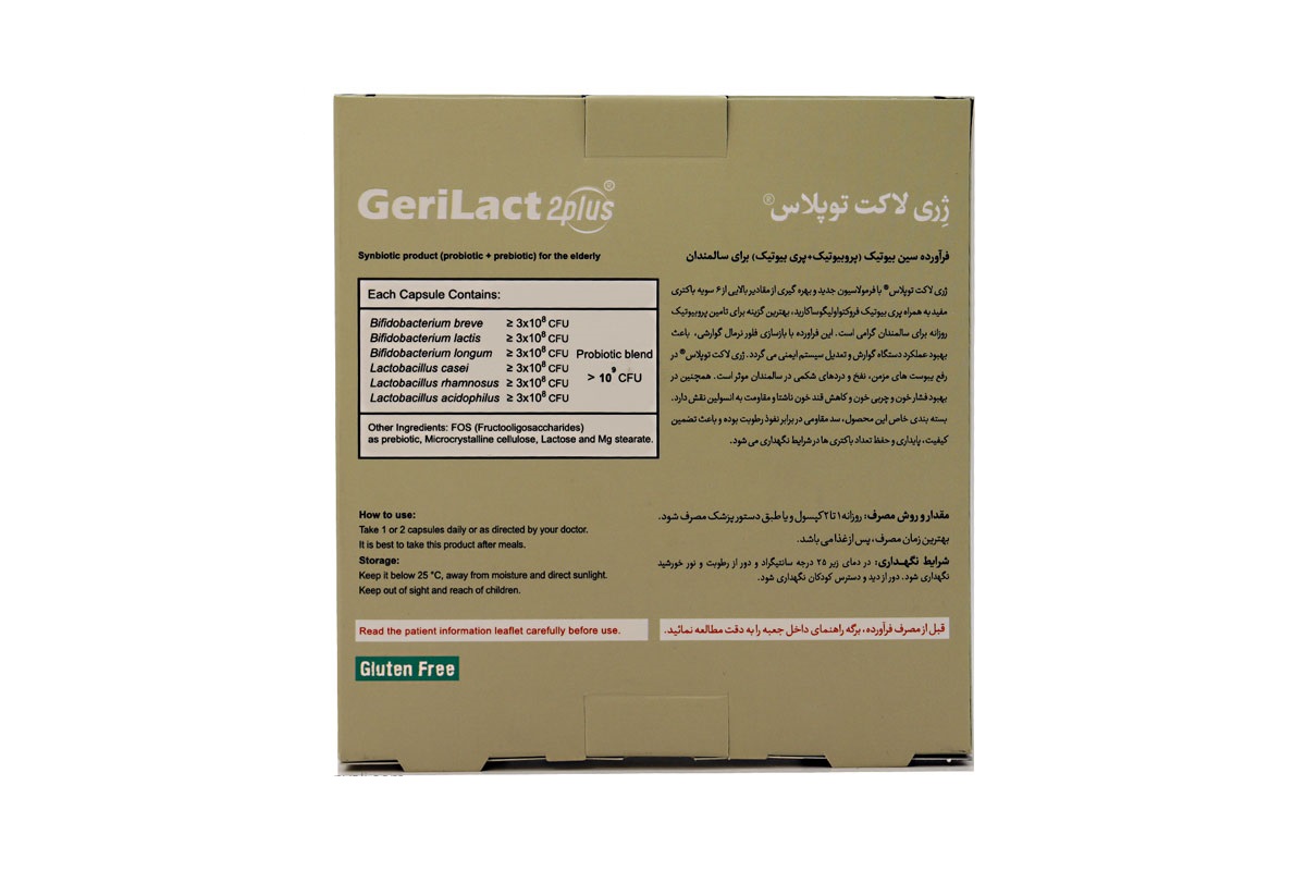 کپسول ژری لاکت توپلاس از شرکت زیست تخمیر حاوی پروبیوتیکهای مفید است که سبب بر طرف شدن مشکلات گوارشی و تقویت سیستم ایمنی در افراد سالمند میشود.