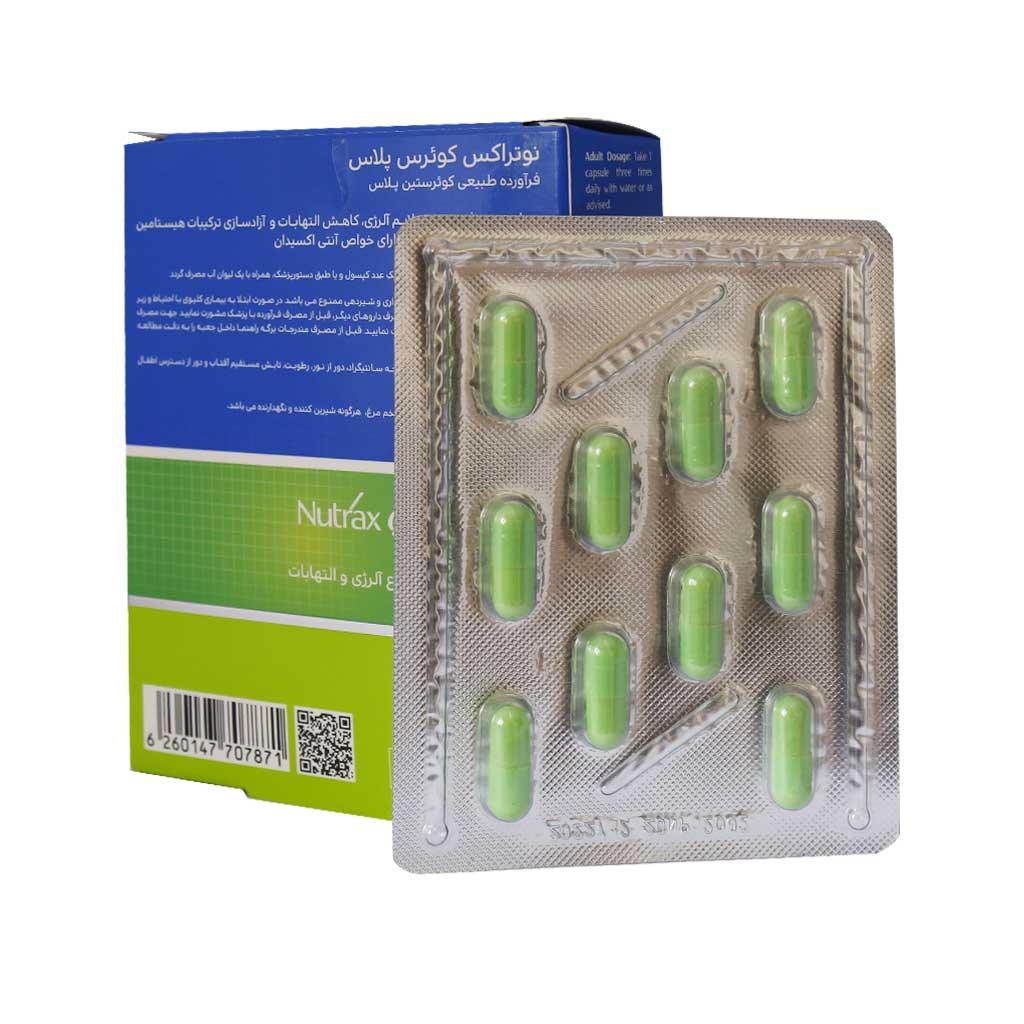 کپسول کوئرس پلاس نوتراکس یک محصول طبیعی است که با داشتن خاصیت آنتی اکسیدانی به بهبود و رفع علائم آلرژی و تقویت سیستم ایمنی کمک بسیاری میکند.