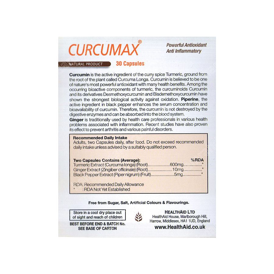 کورکومین ماده اصلی فعال در ترکیبات زردچوبه است. یک ضدالتهاب موثر با خواص آنتیاکسیدان قوی که 3٪ از وزن زردچوبه را تشکیل میدهد. دوز مناسب برای بهرهوری از خواص این ماده 1 گرم در روز توصیه میباشد. مصرف این میزان کورکومین فقط با استفاده از ادویه زردچوبه در طول یک روز دشوار است. به همین علت برای مصرف راحت تر این ماده میتوان از کپسول کورکومکس هلث اید استفاده نمود.