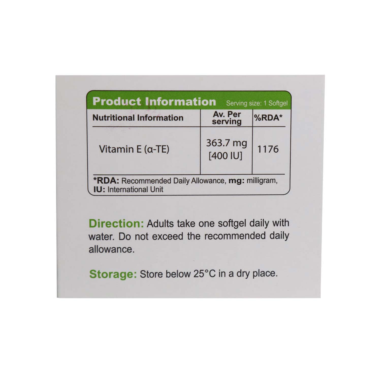این مکمل به تأمین ویتامین E مورد نیاز بدن کمک کرده و با محافظت در برابر اثرات مخرب رادیکالهای آزاد، تقویت سیستم ایمنی بدن، حفظ سلامت قلب و عروق و افزایش شادابی پوست نقش موثری دارد.